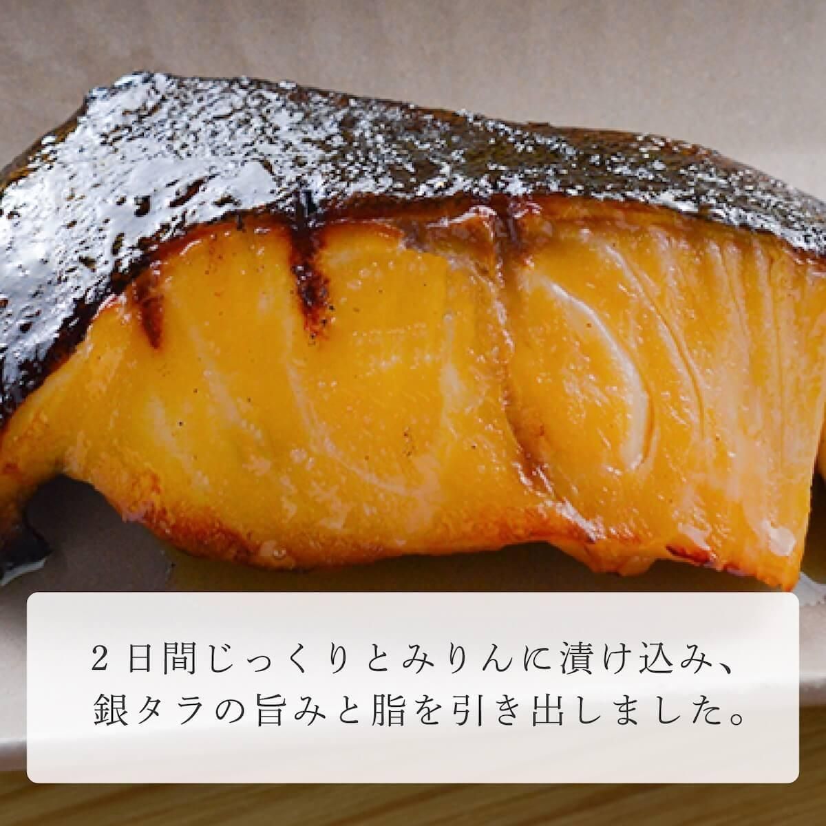 2日間じっくりと銀タラをみりんに漬け込みました。 銀タラの旨みを引き出した、奥深い味わいです。